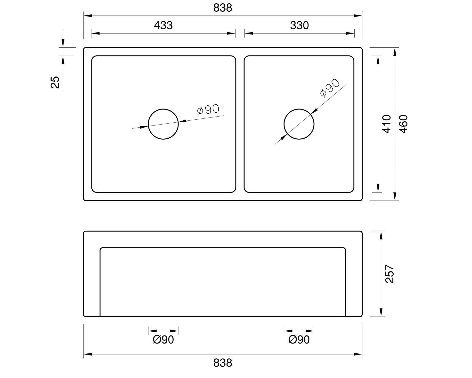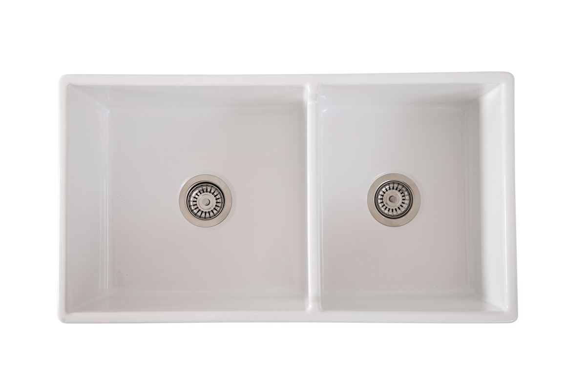 October Special - Country Farmhouse Double Sink with Offset Bowl - 838mm