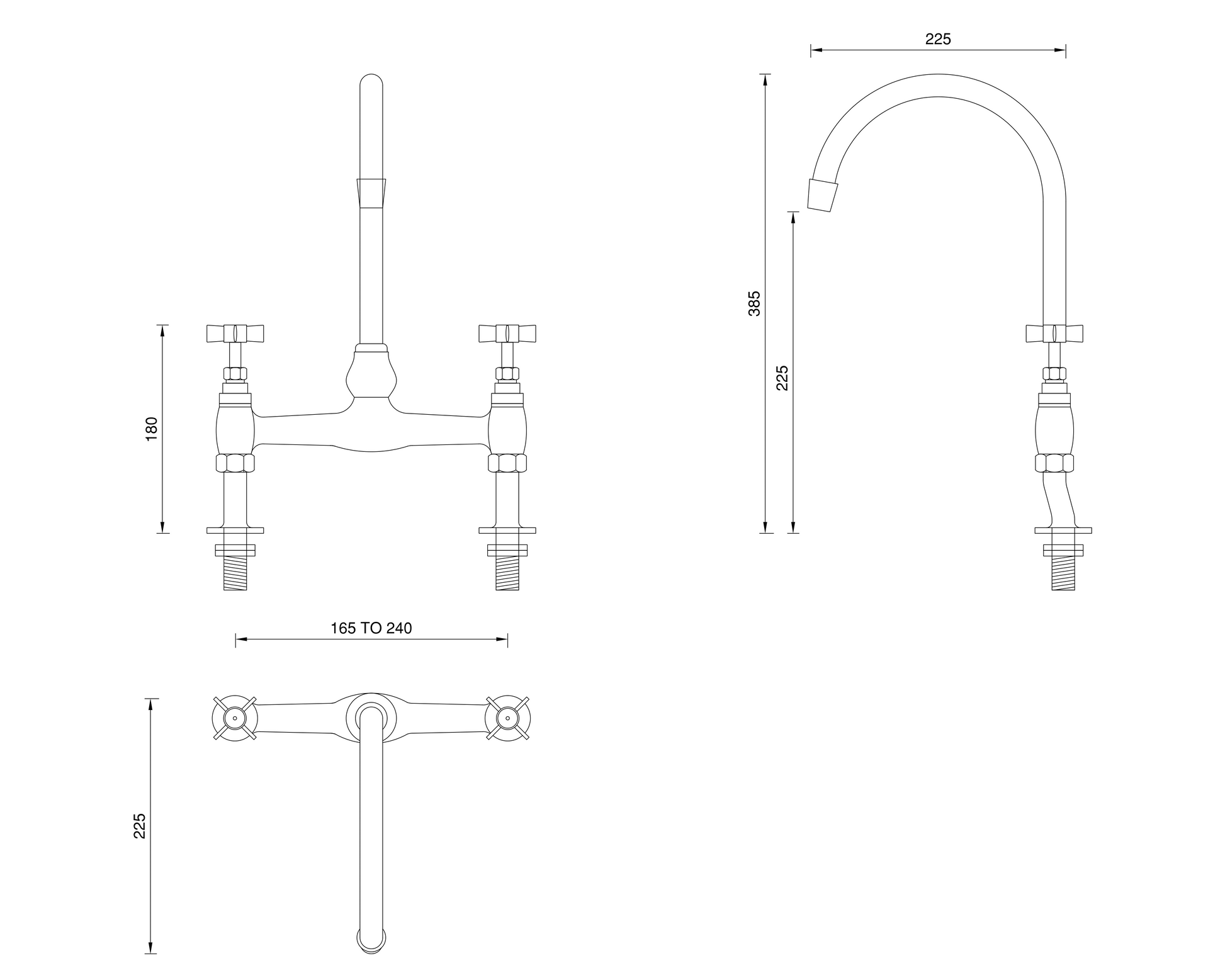 Traditional Kitchen Bridge Mixer Tap - Cross Handles